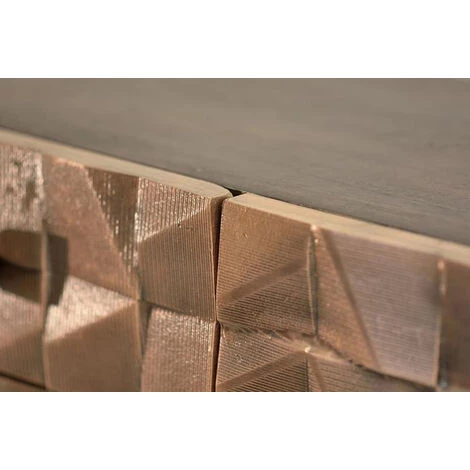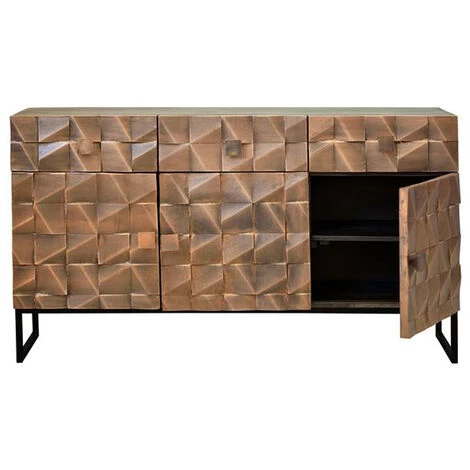 Buffet bahut avec 3 tiroirs et 3 portes en bois de manguier avec étagères intérieures et socle en fer. Livré monté. Dimensions : longueur 142 x profondeur 42 x hauteur 80 cm Matière : bois de manguier, FerColoris : Marron foncé Volume : 0,47m³ Poids : 90 KG