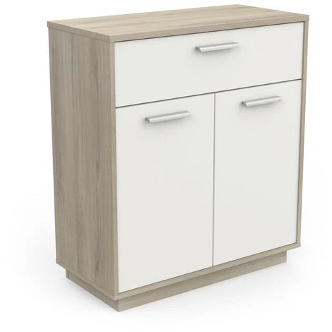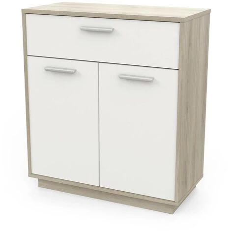 Ce buffet vous propose un vaste espace de stockage adaptable à vos besoins grâce à son étagère intérieure réglable. Son décor bi-ton bois et blanc lui offre un style adaptable à tous les intérieurs et facile à associer.