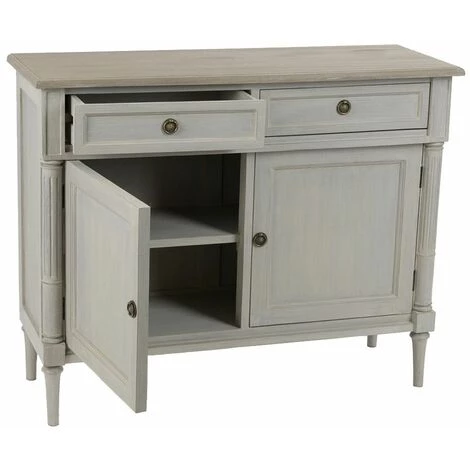 Un buffet de L 100 x l 35 x H 80 cm, composé de 23,4 kg de bois gris pour une tendance et un charme assurés chez vous !