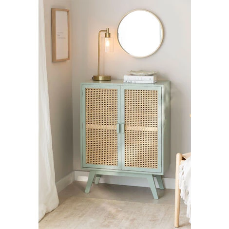 Le buffet Ralik Colors Design est une pièce de caractère naturel et de style vintage que nous adorons. Un meuble de rangement multifonctionnel et polyvalent que vous pourrez placer dans les salons, salles à manger, cuisines, chambres ou encore bureaux ou votre entreprise. Robuste et résistant, il est fabriqué en bois de paulownia et se distingue par les façades originales de ses portes finies en rotin tressé selon la technique du cannage.Chez SKLUM, nous nous engageons pour un modèle de mobilier durable avec des finitions naturelles et sans traitements chimiques ni vernis, en préservant les marques et l’identité du matériau lui-même. Pour préserver la beauté du bois de paulownia, nous recommandons de protéger le produit et d’effectuer un entretien périodique avec des produits spécifiques. Dimensions (Hauteur x Largeur x Profondeur): 90 cm x 67 cm x 37 cm IMPORTANT : Le service standard porte-à-porte ne comprend pas la livraison et la collecte des marchandises au domicile du client, qui sont à la charge de ce dernier. Il est possible que le livreur aide volontairement à la livraison de la marchandise (ceci est totalement volontaire pour le livreur et la société de transport et ne relève pas de la responsabilité de Sklum).L’assemblage n’est pas non plus inclus.