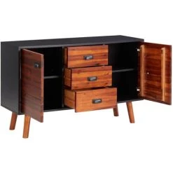 ASUPERMALL Buffet 110x30x65 Cm Bois De Manguier Massif Brut Et Acier
