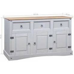 ASUPERMALL Buffet Pin Mexicain Massif Gamme Corona Gris 132 X 43 X 78 Cm