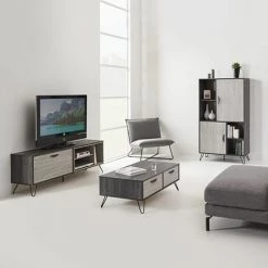 ALTOBUY CARSON – Buffet 4 Portes 1 Tiroir Effet Bois Naturel Et Noir – Marron Clair