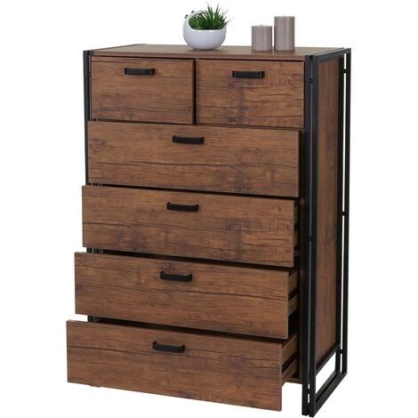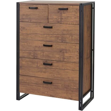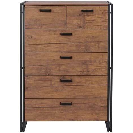 Buffet haut HHG-161, 115x80x40cm, 6 tiroirs, aspect chêne