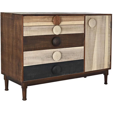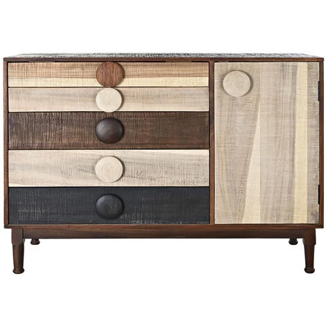 Buffet haut / Meuble de rangement en bois de Sheesham multicolore de 5 tiroirs et 1 porte.Dimensions : Longueur 120 x Hauteur 85 x Profondeur 45 cmDimensions porte : Longueur 39 x Hauteur 64 x Profondeur 7 cmDimensions tiroir : Longueur 72 x Profondeur 39 cmMatière : bois SheeshamCouleur : multicolorePoids : 42 kg
