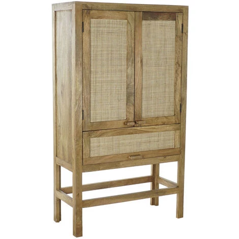 Buffet haut / meuble de rangement en bois de manguier marron foncé et rotin coloris naturel de 2 portes et 1 tiroir.Dimensions : Longueur 90 x Hauteur 160 x Profondeur 40 cmDimensions porte : Longueur 39.5 x Hauteur 80 x Profondeur 3 cmDimensions tiroir : Longueur 76 x Profondeur 32 cmMatière : bois de manguier , rotinCouleur : marron foncé/ naturelPoids : 41 kg