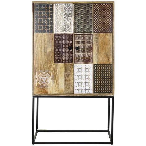 Buffet Haut Meuble De Rangement En Bois De Manguier Multicolore – Longueur 84 X Hauteur 152 X Profondeur 43 Cm -PEGANE-