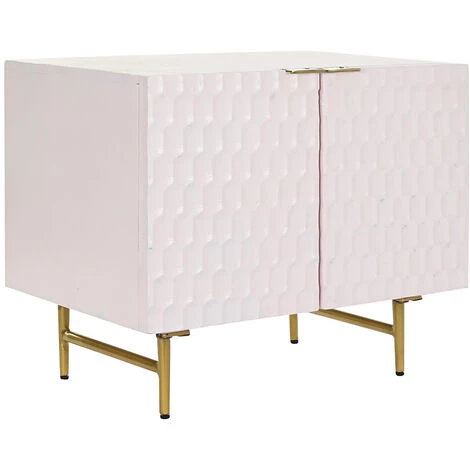 Buffet haut / Meuble de rangement en bois de manguier rose et métal doré de 2 portes.Dimensions : Longueur 63 x Hauteur 52 x Profondeur 43 cmMatière : bois de manguier , métalCouleur : rose , doréPoids : 18 kg