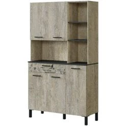 Buffet avec 5 portes coloris chêne noeuds / gris anthracite avec impression digitale. Fabriqué en panneau aggloméré haute densité avec finition mélamine de qualité (matériau ayant une surface non poreuse et très résistante). Très décorative et élégante. Produit de fabrication Espagnol certifié PEFC. Dimensions : 186 x 108 x 40 cm. Coloris : chêne noeuds/ gris anthracite avec impression digitale. Poids : 64.00 KG