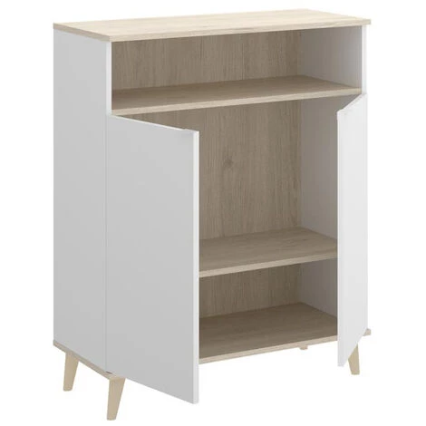 Buffet / Meuble de cuisine en panneau de particule mélaminé coloris blanc/naturelComposée de 2 portes + 1 espace ouvertPoignée de tirage en ABS blancPieds ABS de couleur chêneCharnières métalliques pour les portesLivré en kitDimensions : Longueur 79 x Profondeur 40 x Hauteur 102 cmCouleur : blanc/naturelMatière : panneau de particule mélaminéPoids : 29 kg
