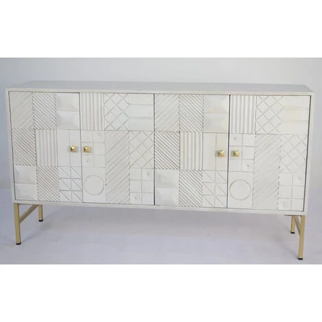 Buffet / Meuble de rangement en bois de manguier et laiton coloris blanc de 4 portes.Dimensions : Longueur 157 x Hauteur 84 x Profondeur 43cmMatière : bois de manguier , laitonCouleur : blanc Poids : 44 kg