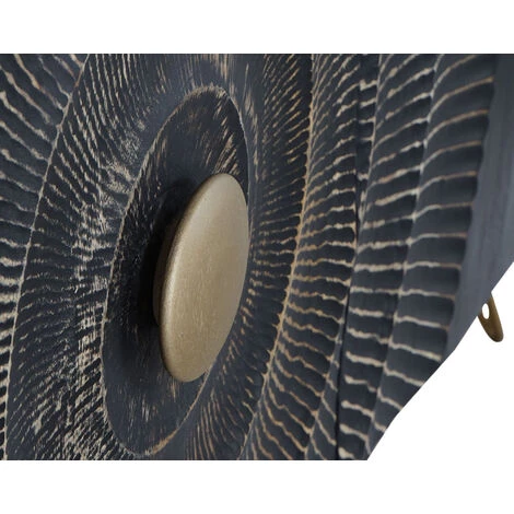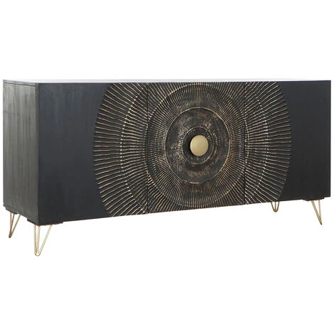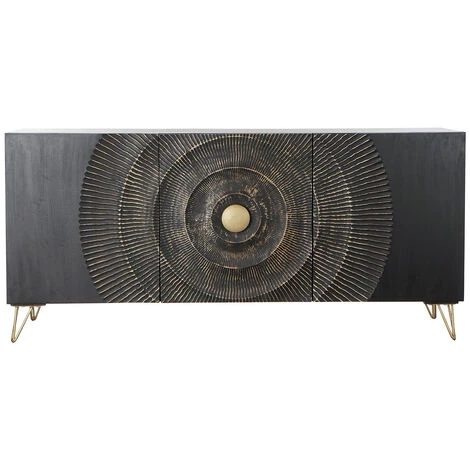 Buffet / meuble de rangement en bois de manguier et métal coloris noir de 3 portes.Dimensions : Longueur 160 x Hauteur 75 x Profondeur 45 cmDimensions porte : Longueur 53 x Hauteur 60 x Profondeur 6 cmMatière : bois de manguier, métalCouleur : noirPoids : 55 kg