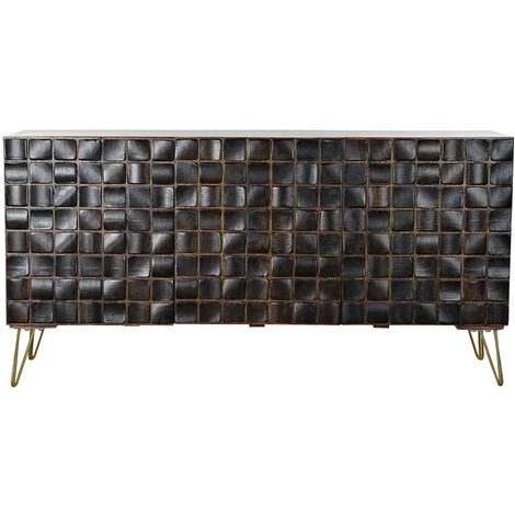 Buffet / meuble de rangement en bois de manguier marron foncé et métal doré de 3 portes.Dimensions : Longueur 160 x Hauteur 80 x Profondeur 45 cmDimensions porte : Longueur 53 x Hauteur 60 x Profondeur 5 cmMatière : manguier, métalCouleur : marron foncé /doréPoids : 58 kg