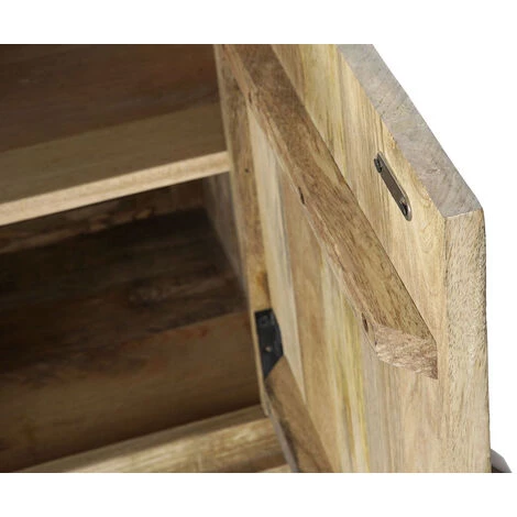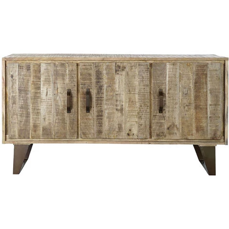 Buffet / meuble de rangement en bois de manguier naturel et métal noir de 3 portes.Dimensions : Longueur 140 x Hauteur 75 x Profondeur 43 cmDimensions porte : Longueur 42 x Hauteur 48 x Profondeur 6 cmMatière : manguier, métalCouleur : naturelPoids : 44 kg