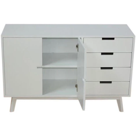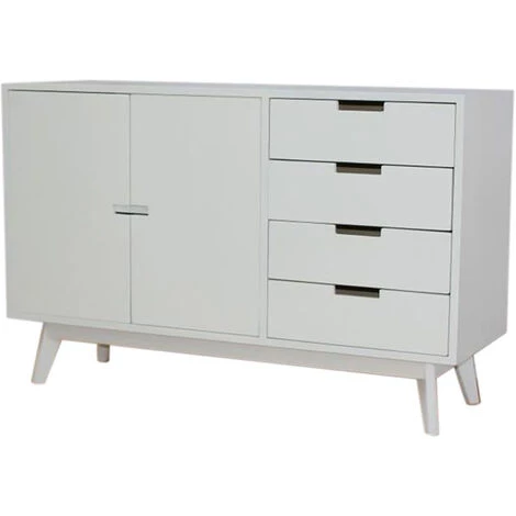 Buffet / Meuble de rangement en bois de paulownia et MDF coloris blanc de 2 portes et 4 tiroirs.Dimensions : Longueur 100 x Hauteur 65.5 x Profondeur 35 cmDimensions porte : Longueur 29 x Hauteur 47 x Profondeur 2 cmDimensions tioir : Longueur 35 x Profondeur 28 cmMatière : bois de paulownia , MDFCouleur : blancPoids : 24 kg