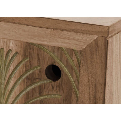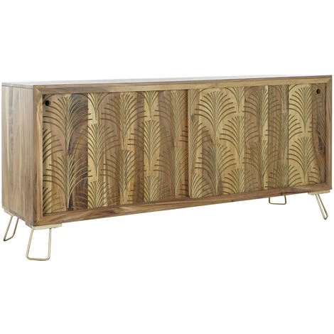 Buffet / meuble de rangement en bois de sheesham et métal coloris naturel motif feuille de 2 portes.Dimensions : Longueur 160 x Hauteur 75 x Profondeur 45 cmDimensions porte : Longueur 80 x Hauteur 52 x Profondeur 2.5 cmMatière : sheesham , métalCouleur : naturelPoids : 55 kg