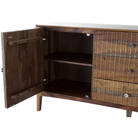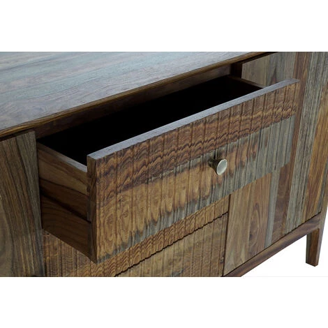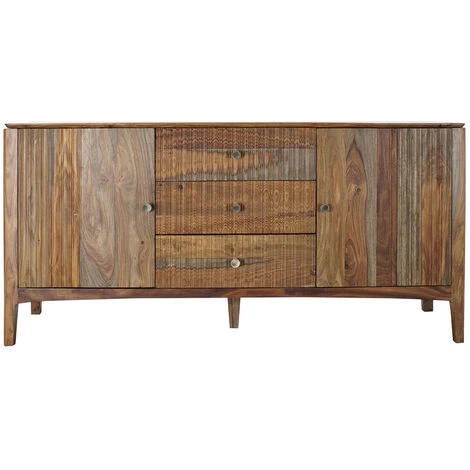 Buffet / meuble de rangement en bois de sheesham marron de 2 portes et 3 tiroirs.Dimensions : Longueur 160 x Hauteur 78 x Profondeur 42 cmDimensions porte : Longueur 47 x Hauteur 55 x Profondeur 7 cmDimensions tiroirs : Longueur 54 x Profondeur 32 cmDistance entre étagères : 26cmMatière : bois de sheeshamCouleur : marronPoids : 60 kg