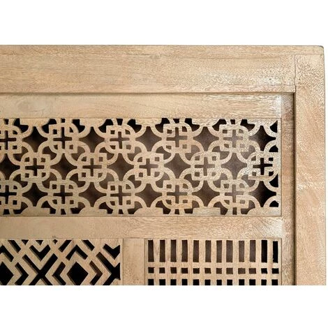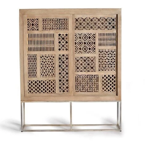 Buffet meuble de rangement équipé de 2 portes coulissantes avec étagères intérieures en bois de teck coloris naturel. Sa base conçue en métal. Facile à entretenir. Livré monté. Dimensions : longueur 140 x profondeur 40 x hauteur 170 cm Dimensions de la porte : hauteur 113 x longueur 67 cmHauteur des étagères : 37 cmEpaisseur de la base en fer : 2 cm Matière : bois de Teck, métalColoris : naturelVolume : 0,95 m³ Poids : 70 KG