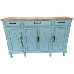 Buffet Meuble De Rangement En Bois Vieilli Bleu Ciel – Longueur 158 X Hauteur 105 X Profondeur 42 Cm -PEGANE-