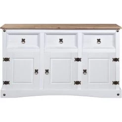 VS VENTA-STOCK Buffet Magnus 2 Portes Coulissantes Couleur Gris, Bois Massif, 140 Cm Largeur – BOIS
