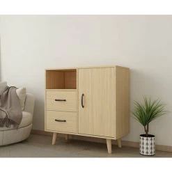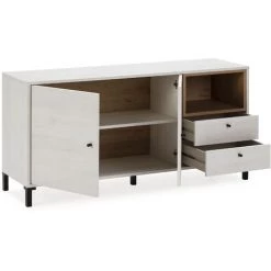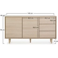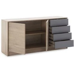 VS VENTA-STOCK Buffet Panama 4 Tiroirs, 2 Portes, Couleur Bois Et Gris, 136 Cm Largeur – BOIS