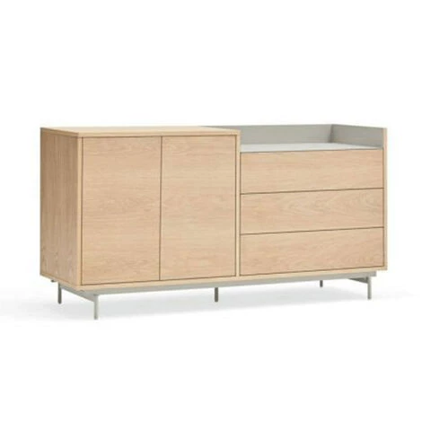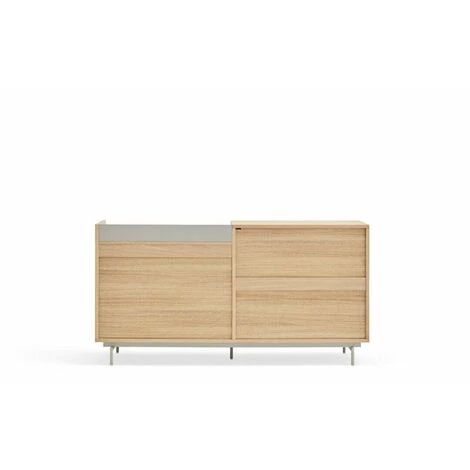 Le buffet VALLEY permet à l’utilisateur d’avoir un espace sur deux niveaux sur lequel placer ses objets et ses effets personnels. Il est consruit en MDF plaqué noyer et dispose de plusieurs finitions pour le revêtement métallique de la partie supérieure. Il comprend 2 portes équipées de charnières amortissantes, qui assurent une fermeture douce et silencieuse, ainsi que de 3 tiroirs afin de vous assurez une meilleure optimisation de vos espaces.