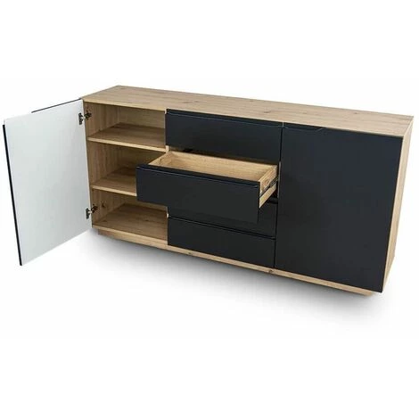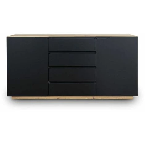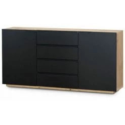 Vous aimez les meubles modernes ? Laissez-vous tenter par ce buffet. La couleur noire des façades associée à la teinte du chêne créée un style très élégant. Le meuble contient deux armoires spacieuses et quatre tiroirs. Le buffet s’intégrera parfaitement aux intérieurs modernes.