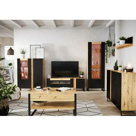 Adepte du style factory ? Le buffet GOUSTO a réussi à s’imprégner de ce que vous préférez. Si vous êtes fan des couleurs chêne et noir qui se fondent parfaitement avec le métal, ce meuble minimaliste et sophistiqué vous comblera. Dans un grand loft comme dans un petit appartement, il sait trouver sa place en réjouissant ses propriétaires. Offrant de généreuses options de rangement, vous aurez la liberté d’y cacher tous vos trésors sur ses 3 étagères dissimulées par des portes et dans ses 3 tiroirs. Ses LED extérieur et ses pieds en métal lui donnent une charme supplémentaire qui ferait craquer n’importe qui. N’hésitez pas à habiller son large plateau couleur chêne avec de belles plantes ou vos plus beaux bibelots.