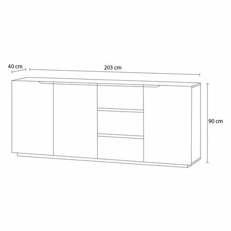 Vous êtes à la recherche d’un buffet qui s’intègre parfaitement au reste de votre intérieur ? Ce modèle dans la nuance de noir combinée à la nuance de chêne sera parfait. La meuble comporte trois compartiments et trois tiroirs. Façades sans poignées