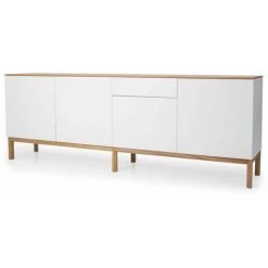 Buffet blanc et chêne équipé de 4 portes et un tiroir