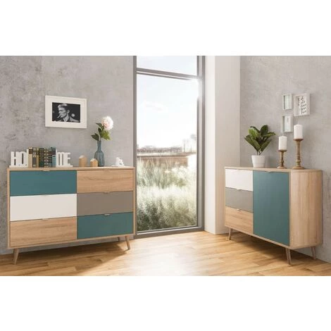 Buffet 103×40 cm Avana avec une porte et trois tiroirs multicouleurs