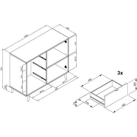 - Caractéristiques du produit 3 tiroirs avec coulisses en métal