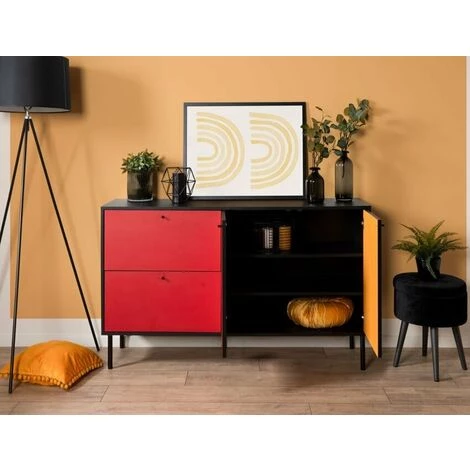Buffet 145x81H cm multicouleurs avec deux portes et deux tiroirs