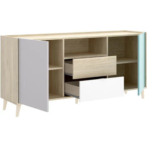 Buffet 155×43 cm Penny avec deux portes et deux tiroirs multicouleurs