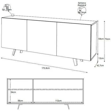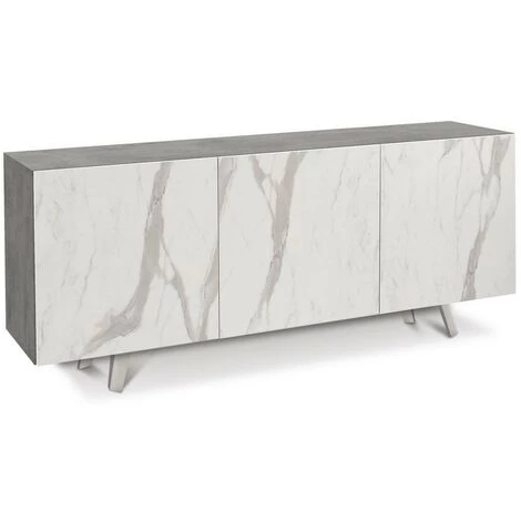 Buffet à 3 portes 174×43 cm avec ouverture push – pull couleur Ciment et marbre Calacatta