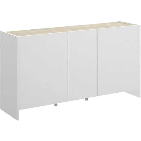 Buffet de salon 138 cm Britney Blanc mat et naturel avec trois portes