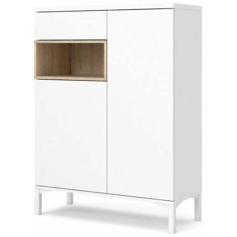 Buffet de salon 89xH119 cm Blanc mat et ChĂŞne avec un tiroir et deux portes