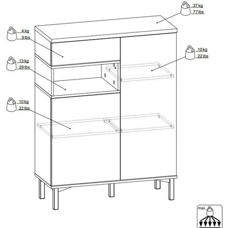 - Comprend deux portes, un tiroir et un compartiment au design rétro.