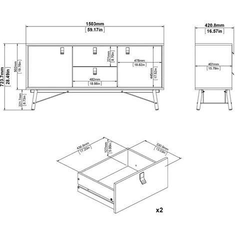 - Deux portes et deux tiroirs au design rétro.