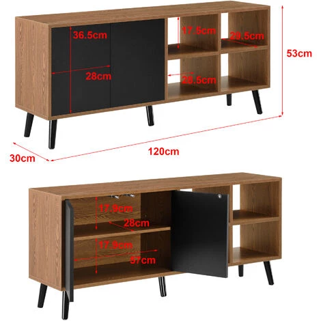 Cette commode pratique et dĂ©corative sera un accessoire parfait de votre maison. Les 2 portes s’ouvrent par pression (technologie Push-to-Open) et donnent accès aux espaces de rangement. 4 surfaces de stockage ouvertes offrent de la place supplĂ©mentaire pour que vous puissiez bien organiser vos objets.