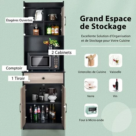 - 【Étagères réglables pour un rangement personnalisé:】Afin de répondre à vos divers besoins de rangement, notre meuble de cuisine est équipé de trois étagères réglables à 5 positions qui peuvent être ajustées en fonction de la taille des différents objets. Il convient de mentionner que ces étagères sont faciles à déplacer, sans tournevis.