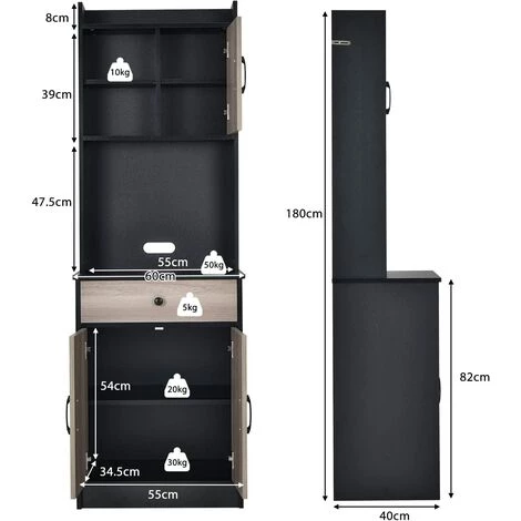 - 【Expérience géniale d’utilisation :】Vous pouvez gérer de manière ordonnée votre micro-ondes, cafetière et autres appareils, en faisant passer les fils à travers le trou de gestion des câbles pour créer un plan de travail bien rangé. De plus, il est facile d’ouvrir et de fermer les portes avec des poignées en métal.