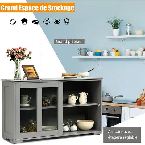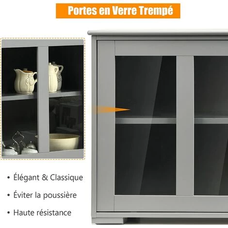- 【Porte en verre transparent et étagère réglable :】Le buffet a une porte transparente en verre trempé, de sorte que l’intérieur de l’armoire est également clairement présenté. L’étagère du buffet peut être ajustée de manière à pouvoir y placer des objets de différentes hauteurs.