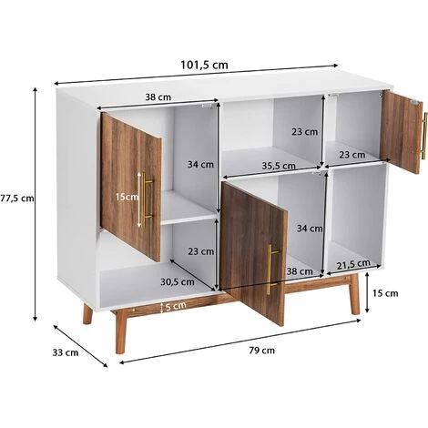 - 【Conception soignée et élégante : 】 Ce buffet est doté de six compartiments, chacun d’entre eux étant de taille et de forme différentes. L’irrégularité de la structure s’accorde avec d’autres meubles et trouve sa place dans différents styles de décoration. Trois des compartiments sont équipées de portes en bois marron, pour une touche plus élégante.