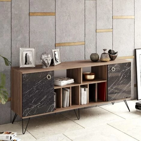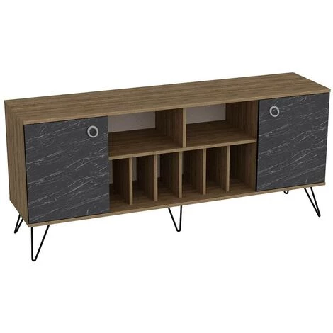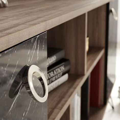 Profitez d’un espace de rangement pratique et vaste grâce au buffet 2 portes et 2 Ă©tagères Ancon 180×78,6cm Bois Naturel et Noir effet marbre ! La qualitĂ© et l’excellence des matĂ©riaux utilisĂ©s dans la fabrication contribueront Ă vous donner le meilleur des meubles d’intĂ©rieur. Tirez profit de votre espace tout en affichant votre style !
