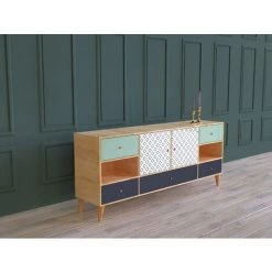 Profitez d un espace de rangement pratique grâce au buffet 5 tiroirs 2 étagères et 2 portes Ancon 180x80cm Bois Multicolore ! La qualité et l excellence des matériaux utilisés dans la fabrication contribueront à vous donner le meilleur des meubles d intérieur. Tirez profit de votre espace tout en gardant style !