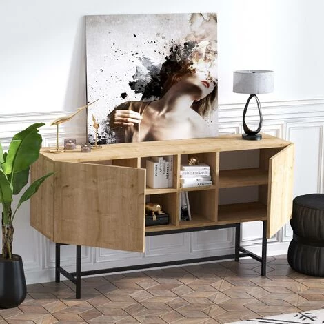 Le buffet bas Jatit est l harmonie parfaite entre l attrait intemporel et le design modernisé. C est un meuble qui a de la classe dans toutes les pièces de la maison, dans la salle à manger, la cuisine ou le salon pour ranger la vaisselle ou le linge de table, ou dans la chambre à coucher pour y classer des livres ou des objets décoratifs. Nous aimons la couleur claire du bois non traité, qui lui permet de s adapter à tout style de décor, et la légèreté visuelle de ses pieds en métal. Créez une présentation attrayante en plaçant des fleurs, des plantes, des lampes et d autres beaux objets sur le plateau.