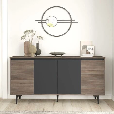 Le buffet bas Avlin est une combinaison de praticité et de beauté. Le bois est remarquablement ouvragé et les nœuds de la couleur chene sont clairement visibles. Posé sur quatre pieds en métal robute et stable, l Avlin offre de nombreux rangements sans prendre trop de place. Dans votre salon, mettez-y quelques bouteilles de choix. Dans la salle à manger, placez les plats pour les grandes occasions. Dans le couloir, désignez une boîte pour chaque membre de la famille. Dans la chambre à coucher, empilez des draps fraîchement lavés et pliés. Parfait pour les intérieurs scandinaves, rustiques, bohèmes ou exotiques qui mettent en vedette le bois et la couleur chêne.