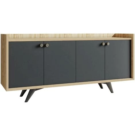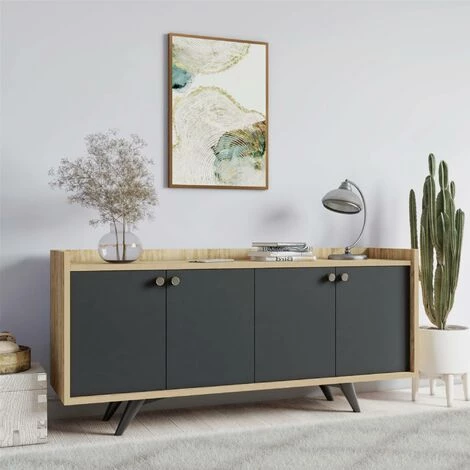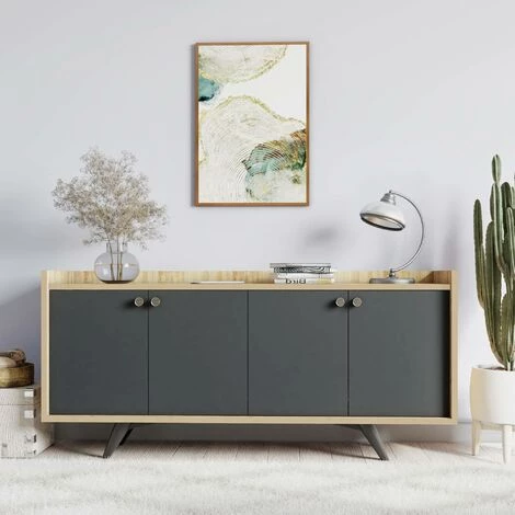 Le buffet bas Aledros est une combinaison de praticité et de beauté. Le bois est remarquablement ouvragé et les nœuds de la couleur chêne sont clairement visibles. Posé sur quatre pieds en métal robute et stable, Aledros offre de nombreux rangements sans prendre trop de place. Dans votre salon, mettez-y quelques bouteilles de choix. Dans la salle à manger, placez les plats pour les grandes occasions. Dans le couloir, désignez une boîte pour chaque membre de la famille. Dans la chambre à coucher, empilez des draps fraîchement lavés et pliés. Parfait pour les intérieurs scandinaves, rustiques, bohèmes ou exotiques qui mettent en vedette le bois et la couleur chêne et Anthracite.