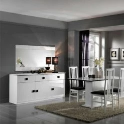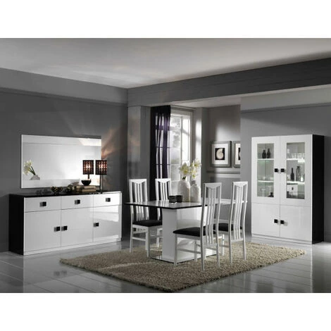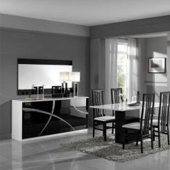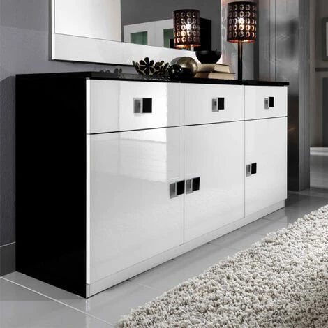Enfilade moderne 3 portes et 3 tiroirs finition noir et blanc laqué